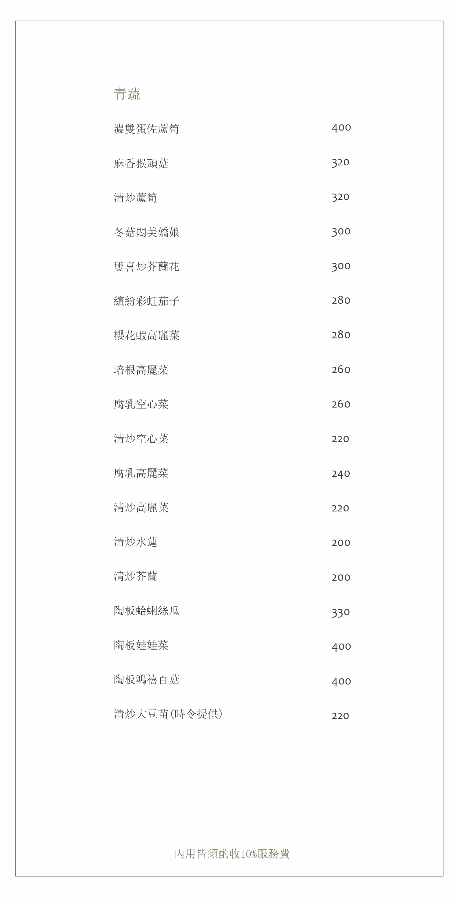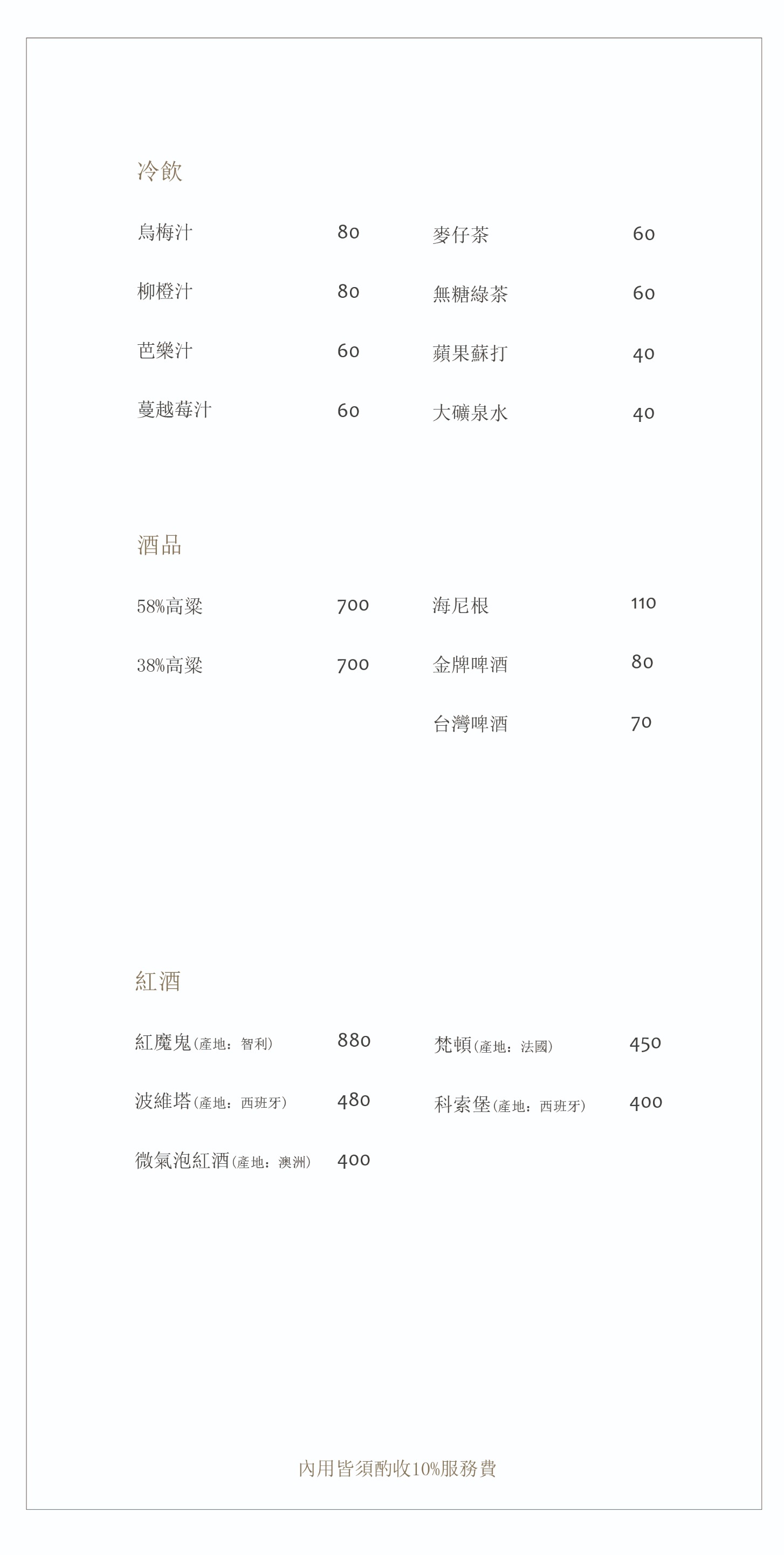 自帶酒品酌收開瓶清潔費 · 每桌/$300